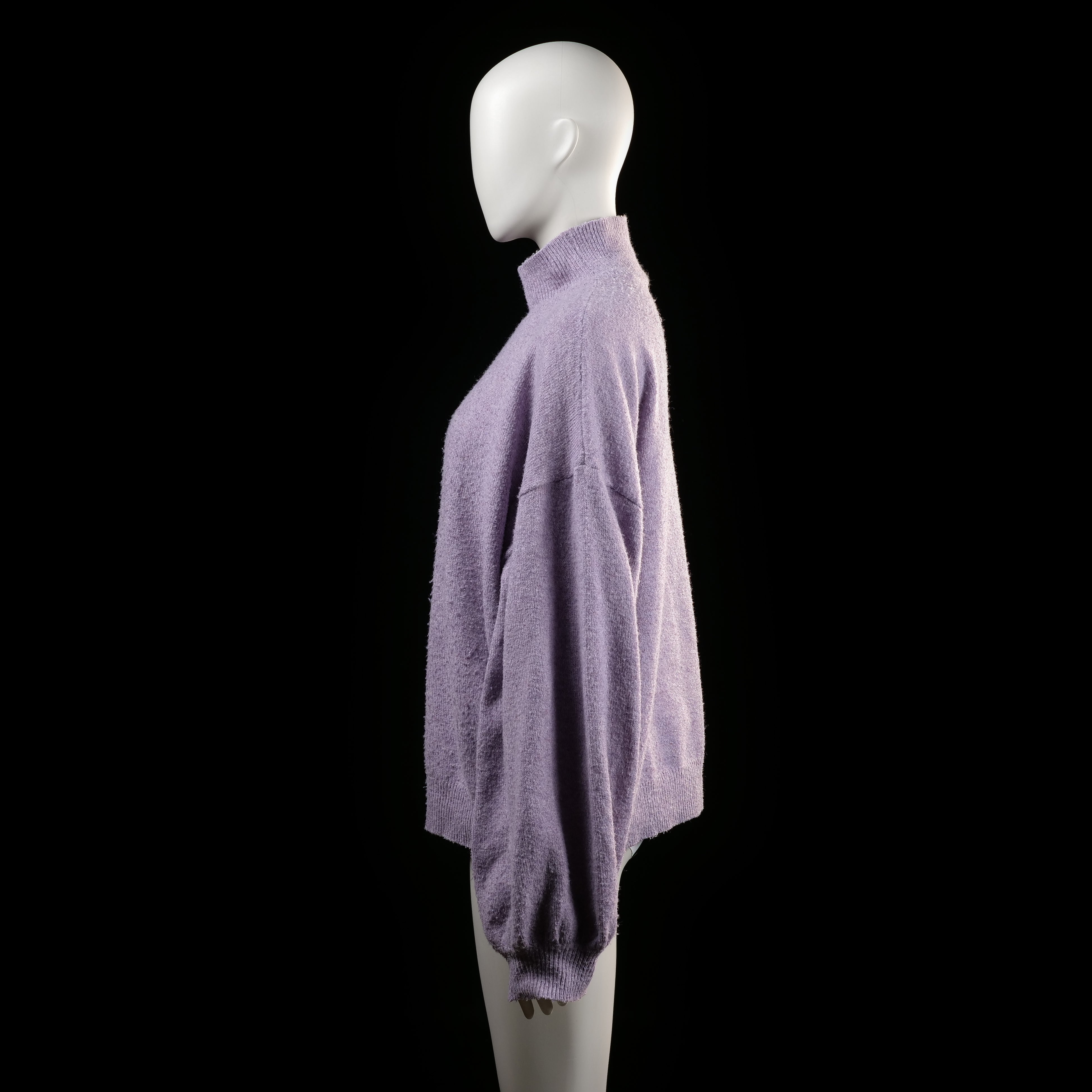 Loose-fitting sweater with a mock neckline and ribbed cuffs and hem. Textured knit throughout in a single solid color.