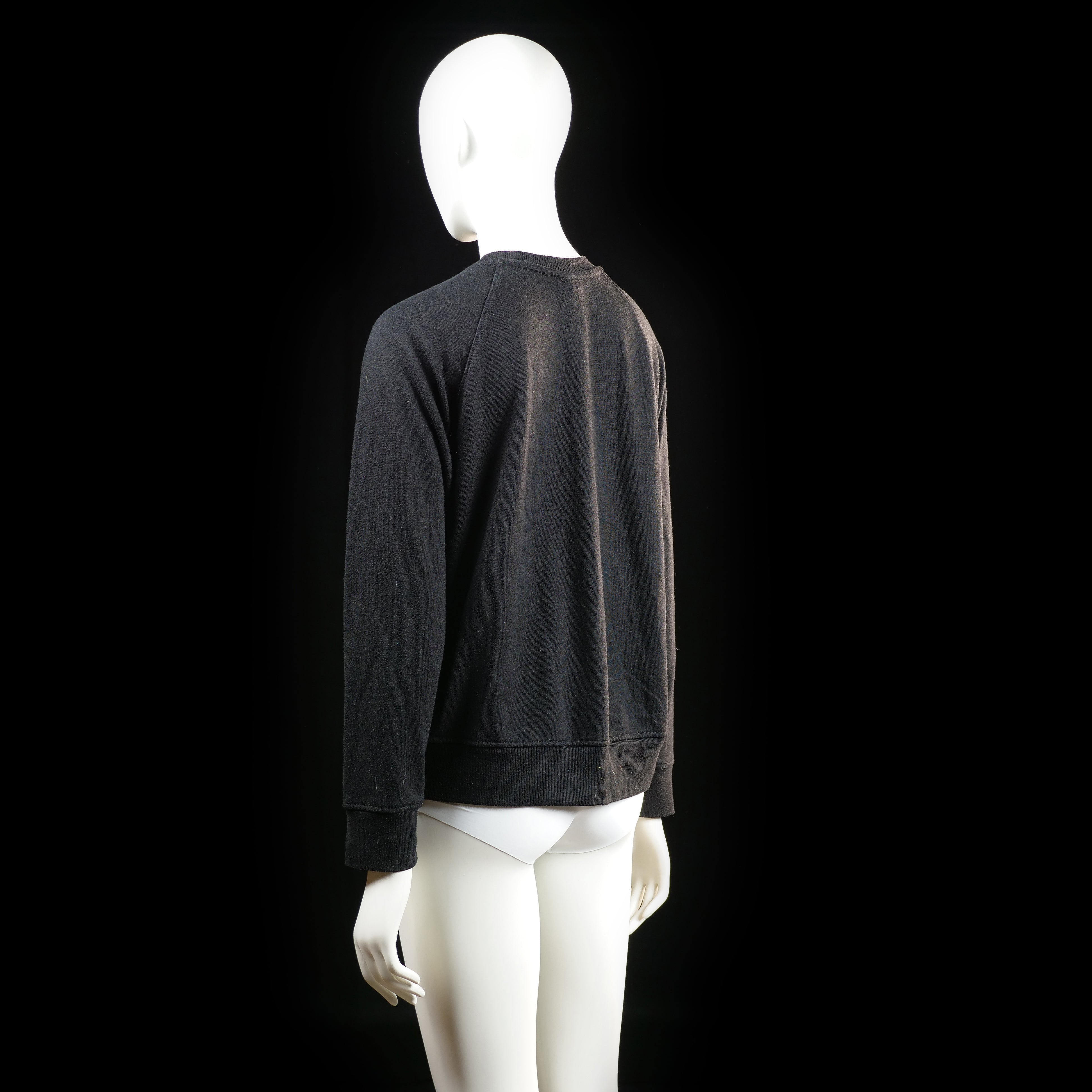 Solid black crewneck sweatshirt with long raglan sleeves and ribbed cuffs and hem. No visible patterns, logos, or embellishments.