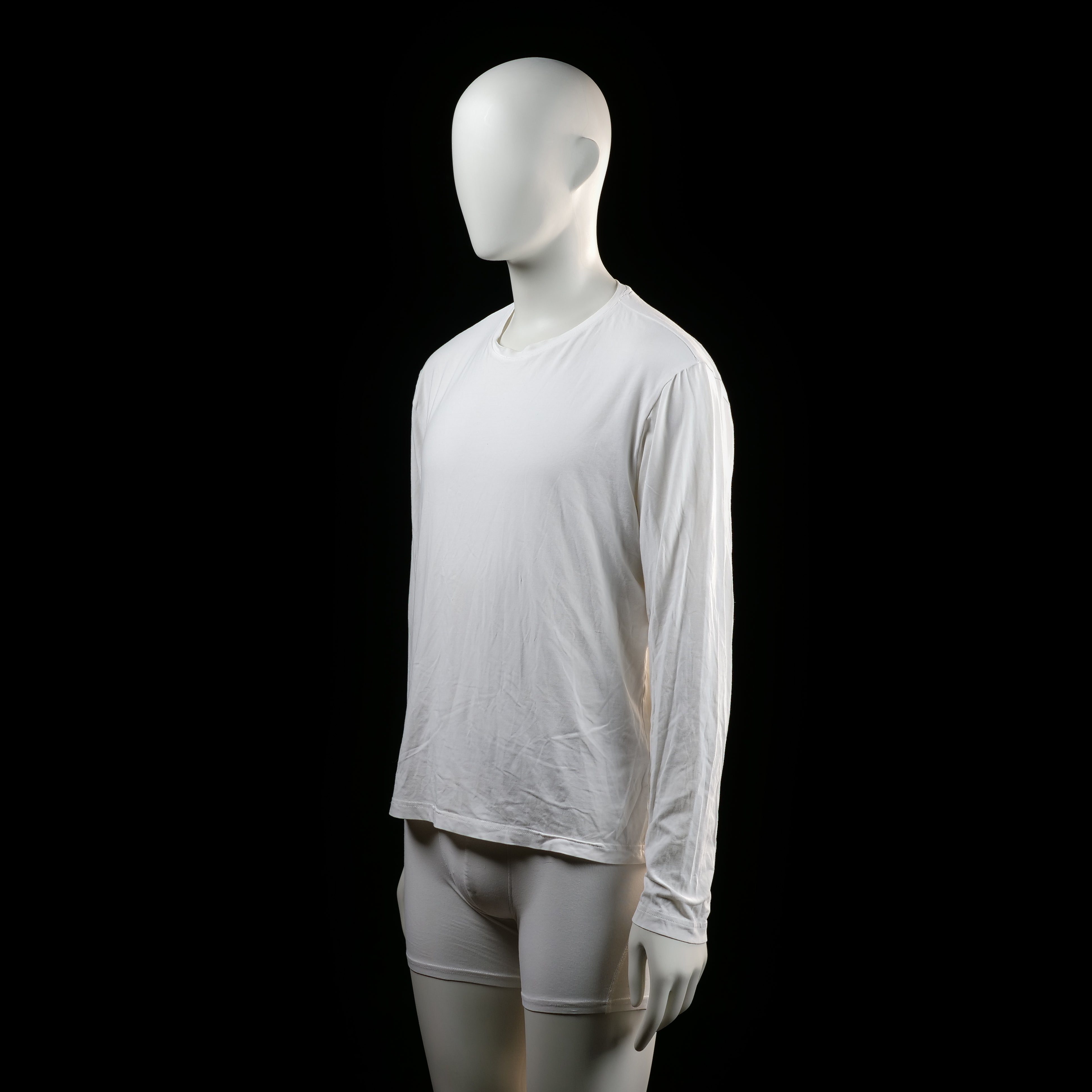 Plain long-sleeve top with a crew neckline and straight hem. No visible patterns, prints, or closures.