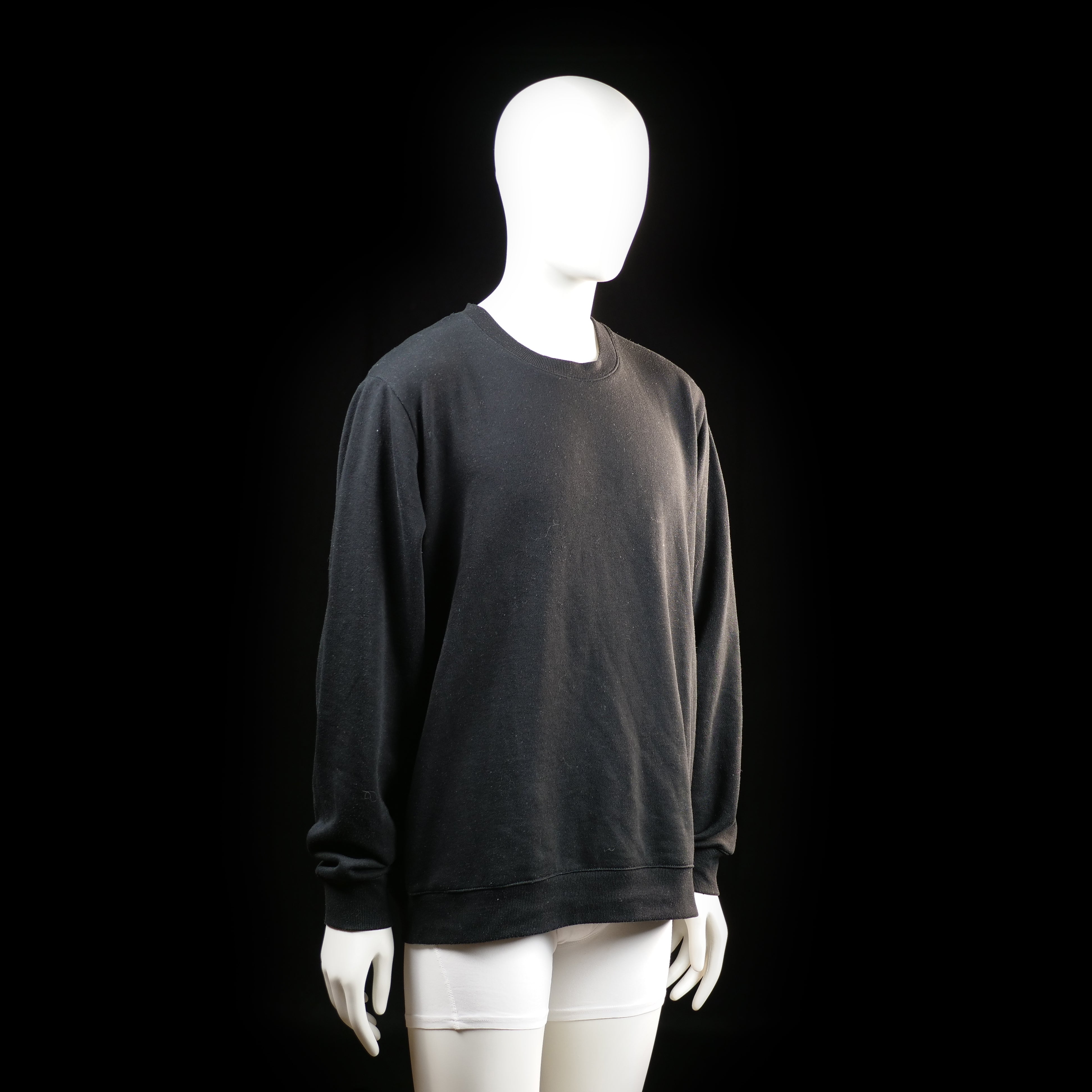 Solid black crewneck sweatshirt with long sleeves and ribbed cuffs and hem. No visible graphics, patterns, or embellishments.