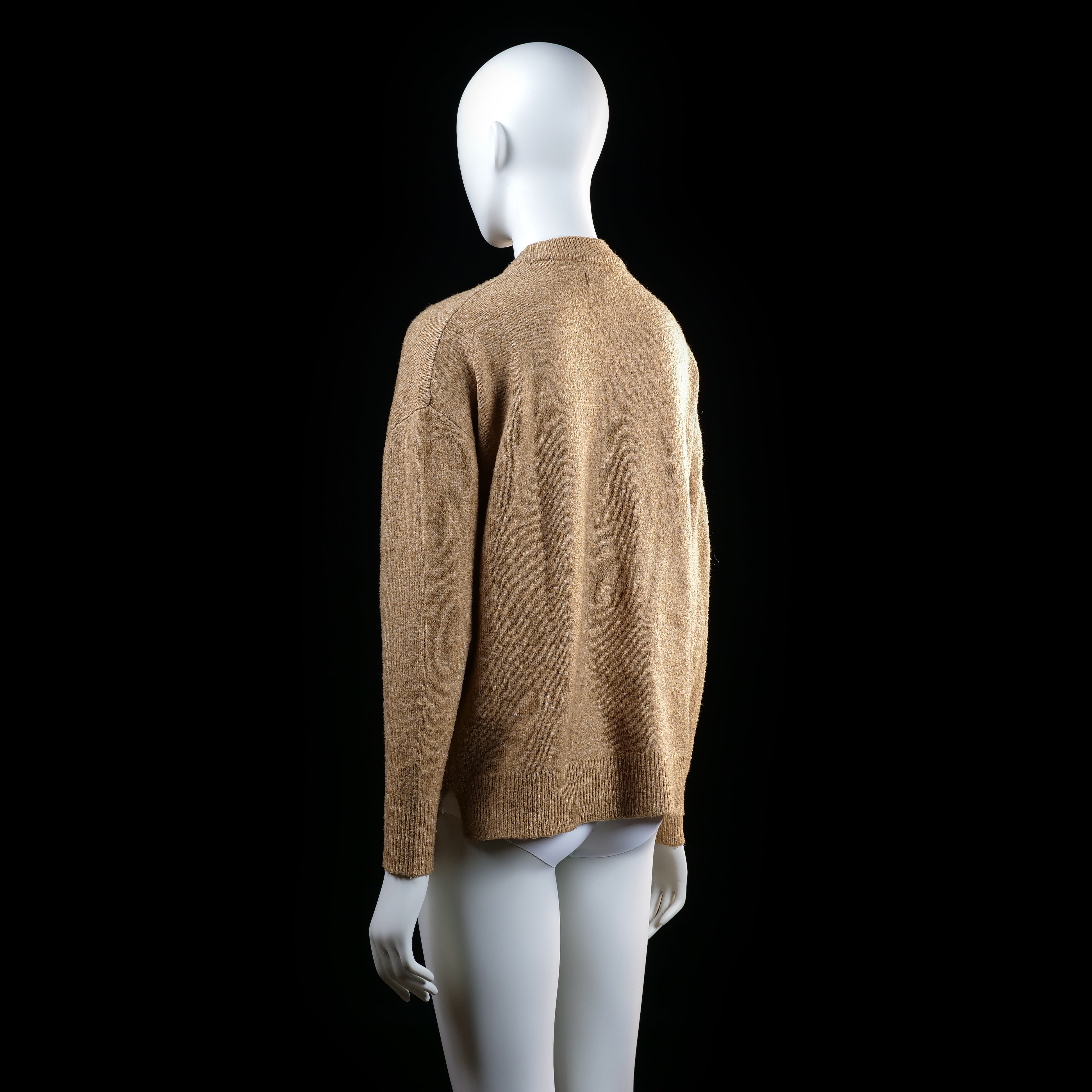 Loose-fitting sweater with a crew neckline, ribbed cuffs, and a ribbed hem. The surface has a slightly fuzzy texture.