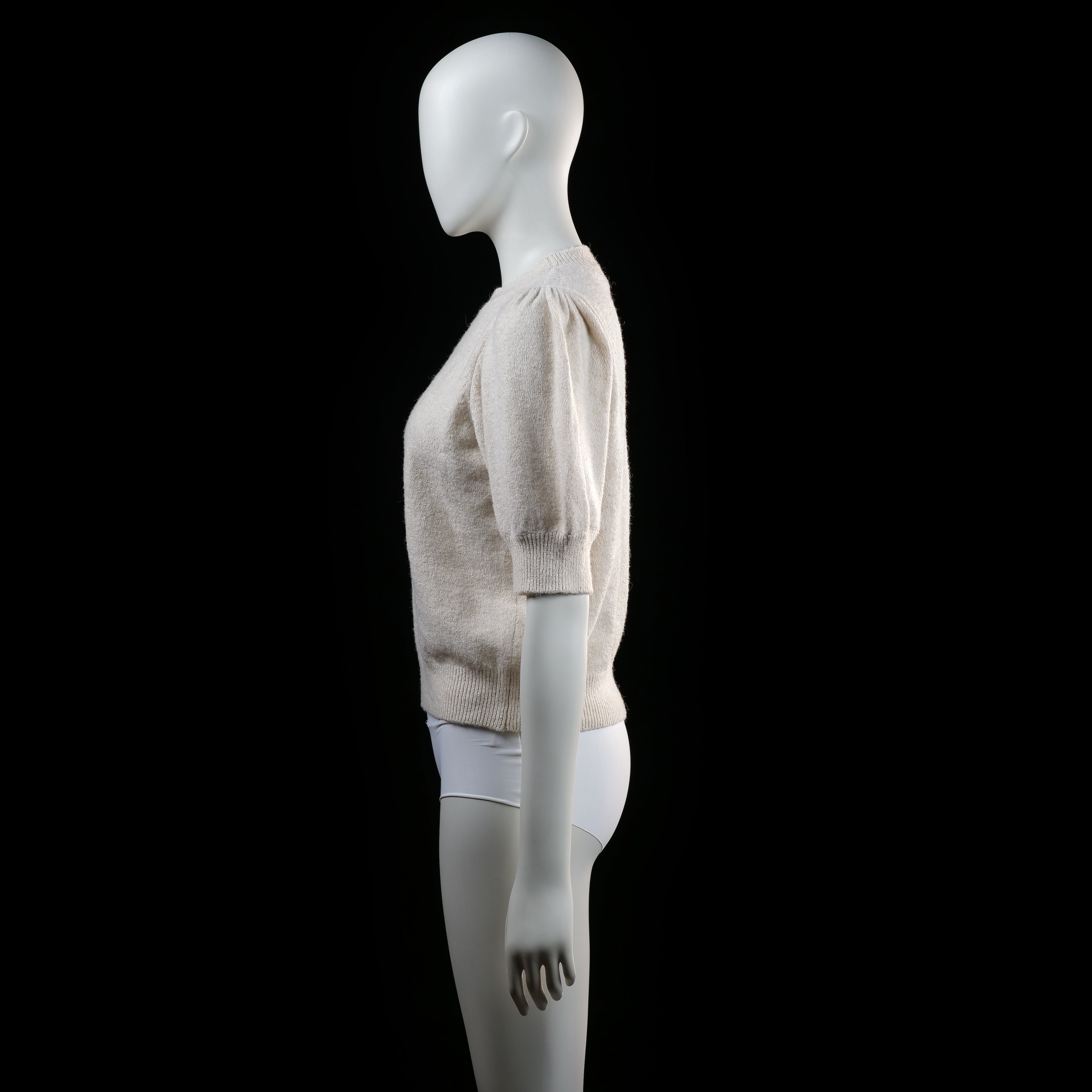Knit pullover with a crew neckline and voluminous elbow-length puff sleeves. Features ribbed cuffs and hem.